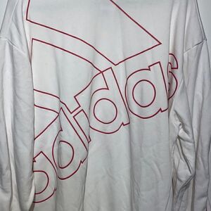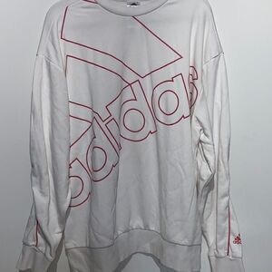 Adidas Women’s Big Signature Print Pullover Long Sleeve White Sweatshirt Size XL