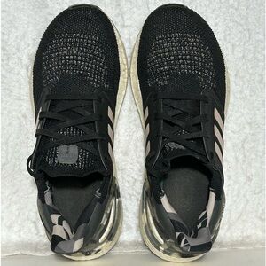Adidas Womens Black Grey Ultra Boost 20 Running Athletic Sneakers Shoes. Color: Core Black/Grey/Camo. Pre-owned condition – refer to pictures for description of shoes. No rips or tears. Smoke free.