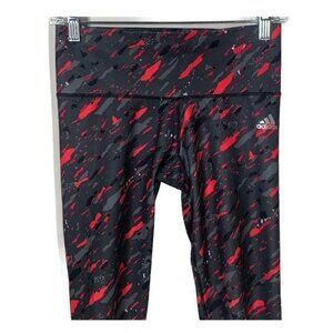 Adidas leggings, women’s size S, cropped yoga pants, black red activewear, running tights, gym leggings, Climalite workout pants, bold pattern, sporty chic