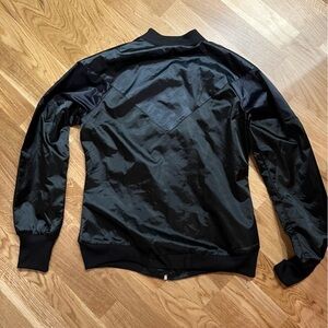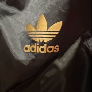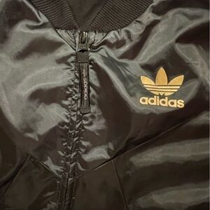 Adidas Women’s Black Satin Track Jacket with Gold Adidas logo, size 38 (S)