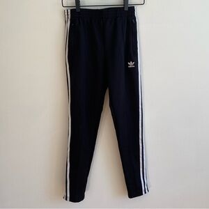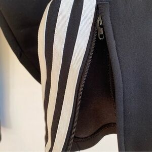 Adidas women’s black soccer warm-up pants. Zippered ankles. Size XS. Elastic waist measures 13” across. Inseam measures 27”. In very good preloved condition. Comes from a smoke-free home.