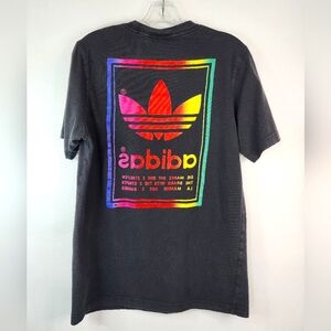 Adidas Women's Black Tee Rainbow Graphic Classic Brand Logo Shirt, sz SM