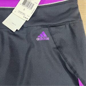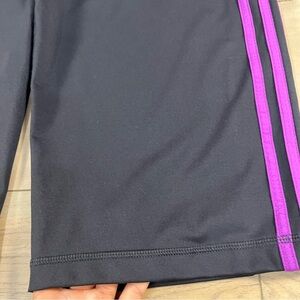 Adidas Women’s Black and Purple Athletic Wide Leg 3 Stripe Capris NWT