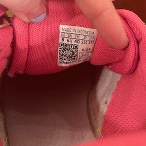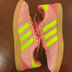 Adidas Women's Size 8 Sneaker. Style is the Breaknet Sleek Sneaker. Colors are Dark Pink and what I'd call a mix of highlighter yellow and lime green.
