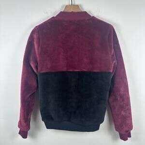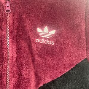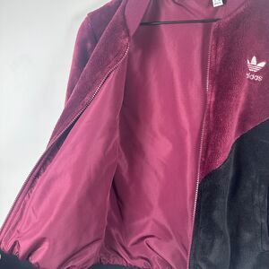 Adidas Womens CLRDO Logo Full-Zip Lined Burgundy/Black Plush Track Jacket XS