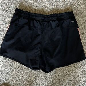 Sleek black shorts with pink stripes. Perfect for athletic activities. Comfortable and stylish design.
