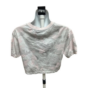 Adidas Womens Crop Top Shirt Size Small Cinch Front Pink Camo Short Sleeve