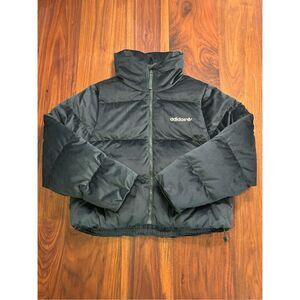 Women’s small Adidas dark green velvet down puffer jacket