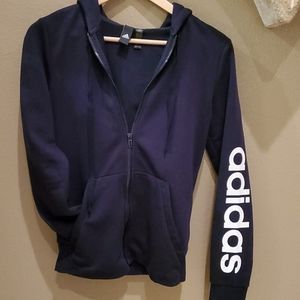 The Adidas Women's Essentials Linear Full Zip Fleece Hoodie in Navy Blue. It is loved as shown in the last photo and reflects in the price. I do have a brand new one with tags. Please message me if you're interested in the brand new one.