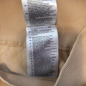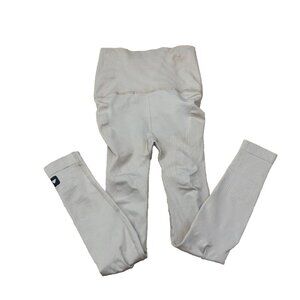 The Adidas Women's Formotion Sculpt High Rise 7/8 Tights in Tan, size Small, are designed for active women seeking comfort and style. Made of blended fabric with a tight fit, these leggings feature a pull-on closure, moisture-wicking properties, and a sculpting design. Perfect for various activities like gym training, yoga, or running, these tights offer breathability and stretch for ease of movement. The beige color and solid pattern make them versatile for all seasons, while the leg style tapers for a modern look. Machine washable for easy care, these Adidas Formotion tights are a great addition to any workout wardrobe. 21" Waist. 10" Rise. 23" Inseam. Used condition, no flaws.