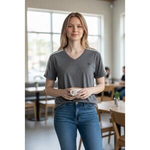 Adidas Women’s Gray V-Neck Active T-Shirt Size XL