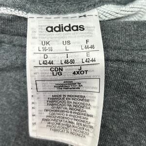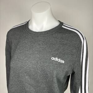 Adidas Women's Grey Three Stripe Fleece Crew Neck Long Sleeve Logo Chest Cuffs Athleisure Pullover Sweatshirt Sweater Size L