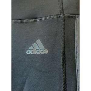 Sculpted silhouette offers a streamlined and supportive fit, perfect for your active lifestyle. These black Adidas leggings are designed with the iconic three stripes down each leg. The high-rise waistband provides a flattering and secure feel, enhancing your natural shape and offering maximum comfort during workouts or everyday activities. With a sleek, minimalist design and subtle Adidas logo, these leggings are versatile enough for the gym, running errands, or lounging at home. Enjoy ultimate flexibility and style while practicing yoga, hitting the trails for a hike, or simply relaxing on a casual weekend.