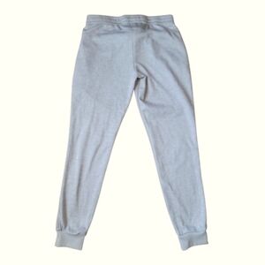 Experience ultimate comfort with these Adidas gray sweatpants, designed with a soft knit fabric and a relaxed fit. The elastic waistband and tapered legs with elastic cuffs ensure a snug fit, making them perfect for both lounging and casual outings.