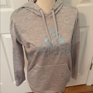 Adidas Women's Light Gray Hoodie with Blue Logo Climawarm Size Medium Lined EUC