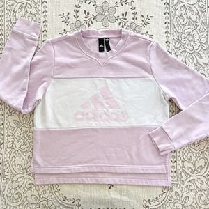 Light pink/lilac purple and white pullover sweatshirt. Cotton blend.