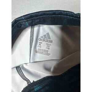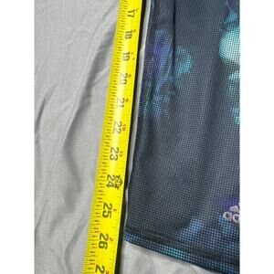 Add a pop of color to your activewear with these bold and stylish Adidas women’s leggings in size XL (16). Featuring a vibrant abstract floral design in turquoise, purple, and white over a black base, these leggings combine comfort and performance with standout style.