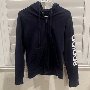 Adidas Women's Navy Blue Essential Linear Full-Zip Hoodie