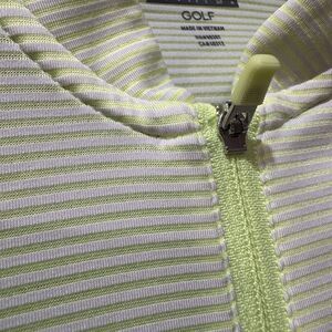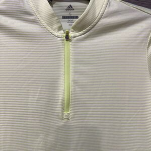 Adidas Womens Neon Green Stripe Golf Polo 1/4 Zip Performance Size Small