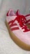 Stylish Adidas Samba sneakers in pink and red. Comfortable and trendy for everyday wear. Details in its sole