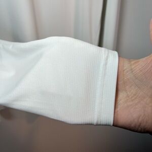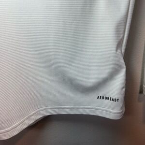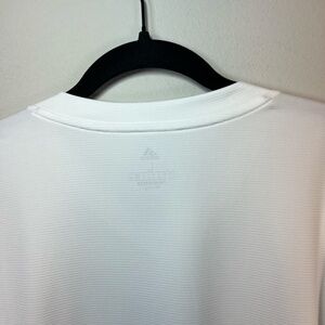 Adidas Primegreen V-Neck Shirt White Pullover Long Sleeve Slightly Textured Base Layer Performance Front Adidas Graphic Logo Lightweight Stretch Aeroready Athletic Athleisure Outdoor