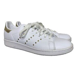 Adidas Women's Stan Smith White Gold Metallic Lace-Up Sneakers w/ Studs, Size 9