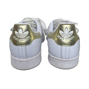 Adidas sneakers, Stan Smith, Women's shoes, White Gold shoes, Lace-up sneakers, EUC footwear, Size 9 shoes, Casual sneakers, Metallic sneakers, Adidas fashion, Women's Adidas, Stan Smith gold, Trendy sneakers