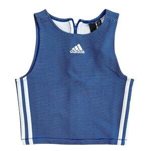 Adidas Womens Stripe Crop tank Top Blue Small NWT Blokecore Sporty Tomboy Femme