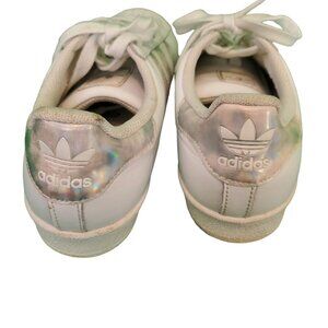 Adidas Women's Superstar Sneakers White Irridescent Pink Stripe leather Sz 6.5