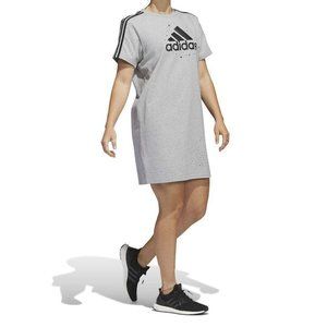 What are you buying: Adidas Womens Sport Activewear T Shirt Dress Size XS Gray Black Celestial Big Logo Print 3 Stripe Short Sleeve IM5305 NWT