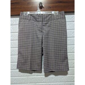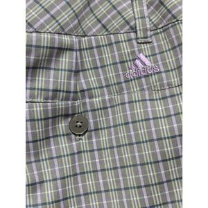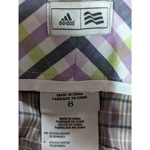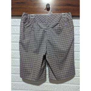 Adidas Women's Tan Lavender Plaid Flat Front Stretch Bermuda Golf Shorts Size 8