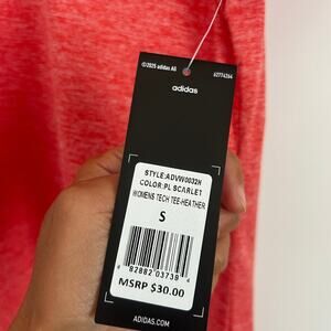 Adidas Women's Tech Tee in Heather PL Scarlet, size Small. This short sleeve tee is brand new with tags! It's a stylish and comfortable choice for your workouts or casual wear.