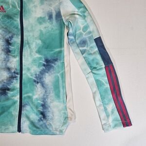 Adidas Track Jacket Womens XS Teal Purple White Tie-Dye Fall Zip Activewear EUC