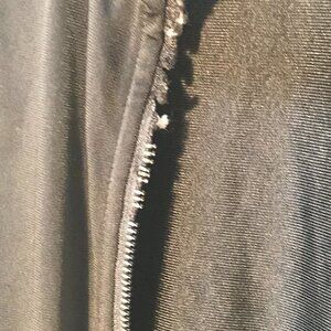 works as an open jacket. No rips holes pulls or flaws other than zipper damage