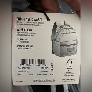 Adidas® Women's VFA Backpack w/ 15-Inch Laptop Sleeve Wonder Blue Adidas OG NEW!