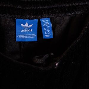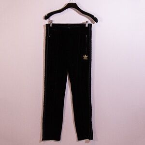 Adidas Women's Velvet Velour Straight Leg Three Stripe Track Pants Black Gold S