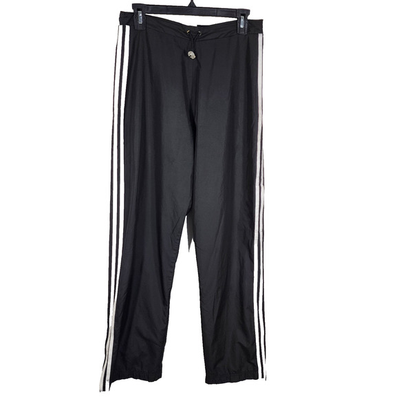 Adidas Womens Windbreaker Track Pant Black Large Training Warm Up 3 Stripe Y2K