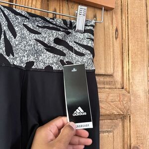 Adidas Womens XS Black Training Shorts Biker Shorts Leopard Trim Athletic NWT