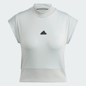 At your desk or out in nature, keep distractions to a minimum so you can get in the zone and stay there. This figure-hugging adidas t-shirt is soft, stretchy and made with AEROREADY technology to manage your body's moisture and help you stay dry and comfortable. With its crop shape and high, ribbed collar, this tee teams well with joggers and jeans alike. A minimum of 70% of this product is a blend of recycled and renewable materials.