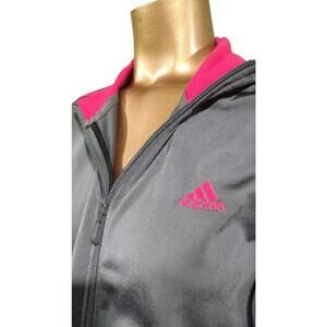 Adidas Women's Zip Up Lined Jacket with High Neck and Pockets, Gray, Pink, Sz M