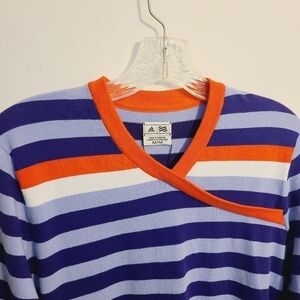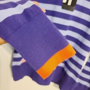 Adidas | Women's v-Neck Purple and Pink Crossover Striped Sweater (Size Medium)