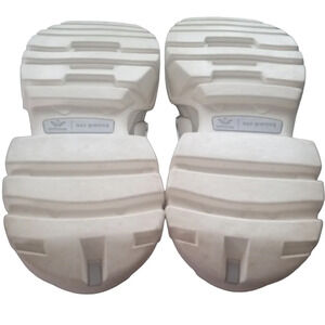 Does have a couple minor scuffs on metallic as shown in pictures. Not noticable when wearing.