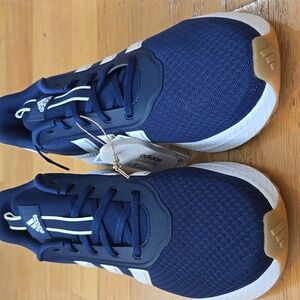 Sleek Adidas shoes in dark blue with white stripes. Ideal for sports and everyday wear.