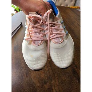The Adidas X_PRLBoost Lace Up Athletic Performance Shoes in Wonder Quartz Velvet size 7.5 are designed for women who are looking to elevate their athletic performance. These sneakers feature a white color with a sleek design and synthetic upper material for durability. With the iconic Adidas branding and specialized X model, these shoes are sure to provide both style and functionality for any active woman. Perfect for workouts or casual wear, the Adidas X_PRLBoost shoes are a versatile and reliable choice for women on the go.