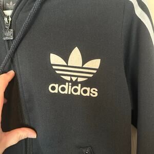 Adidas Y2K Zip Up Hooded Jacket Size M Striped Sleeves Trefoil Logo Black White