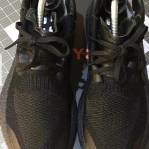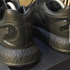 Pureboost sneakers in Core Black from Adidas Y-3 Yohji Yamamoto in Core Black come in a sophistocated mix of materials. Cross paneled elasticized bands throughout, panelling at toe, sides, and heel counter crafted from genuine leather and neoprene fabrics, sculpted rubber sole unit. adidas X Yohji Yamamoto.