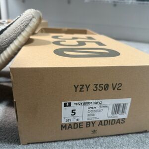 Trendy Adidas YZY 350 V2 sneakers. Features a tan upper with black details. Perfect for any casual outfit.