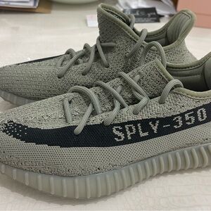 Adidas Yeezy Boost 350 V2 with a sleek design. Features gray and black knit upper. Comfortable and stylish for everyday wear.