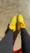 Size 7 but runs a bit big and fits a size 8 (women) Bright and stylish Adidas sneakers. The vibrant yellow color adds a fun touch to any outfit.