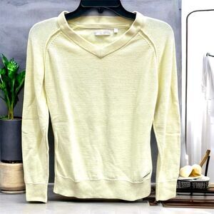 Adidas Yellow/Cream Long Sleeve V-Neck Pullover Sweater/Sweatshirt. Small. EUC